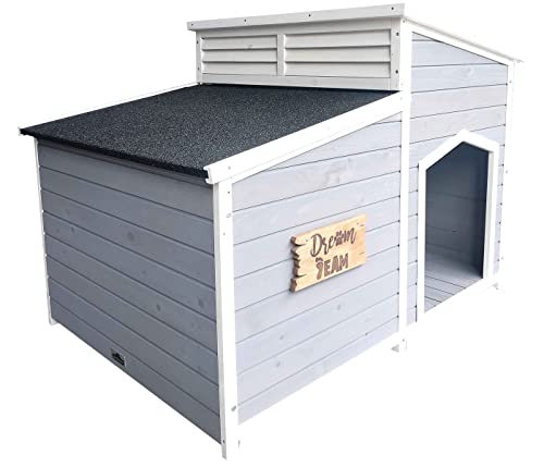 - Die Hundehütte ist aus Tannenholz gefertigt und verfügt über ein wasserfestes Bitumen-Dach