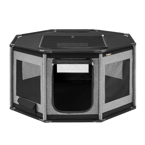Feandrea Welpenauslauf Oxford-GewebeHundekäfig L mit PVC-Rahmen, atmungsaktives Netz, Seitentasche, schiefergrau-tintenschwarz 112 x 112 x 62 cm