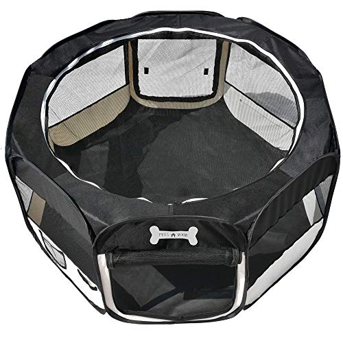 in HundelaufställeWelpenauslauf XL 115 cm Oxford faltbar Schwarz Welpenlaufstall Tierlaufstall Hunde Hasen Meerschweinchen Katzen Innen Außen 8-eckig Petigi