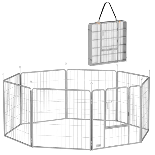 PawHut Welpenlaufstall8-TLG Freilaufgehege aus rostfreiem Stahl, 80 cm hoch, flexibel konfigurierbar mit Einwegtür und Erdspießen für drinnen und draußen