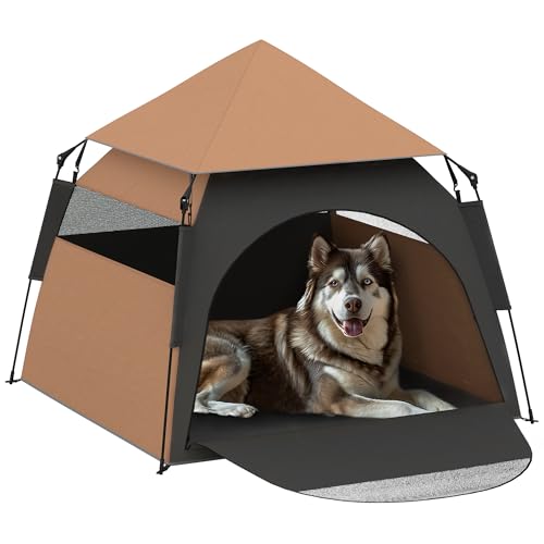 PawHut Haustierzelt Hundezelt für draußen, Tipi mit Tragetasche und Meshfenstern, dunkelbraun, für große Hunde bis 40 kg