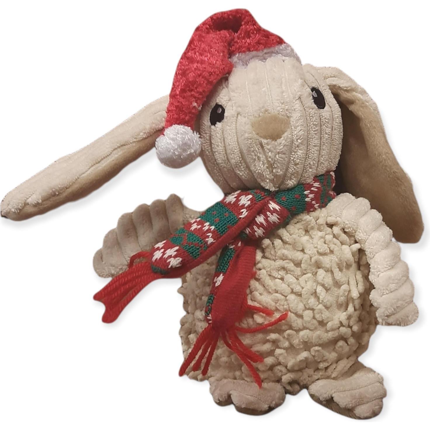 - Ein besonders weicher Hase mit sanften Ohren und einer festlichen Weihnachtsmütze, der Ihrem Hund in der besinnlichen Zeit Freude bereiten wird