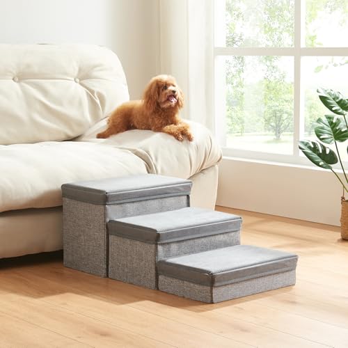in Hundetreppen[en.casa] Hundetreppe Vojens Hunderampe für kleine Hunde 3-stufig Haustierleiter klappbar Grau 30 cm hoch 75 x 40 x 30 cm