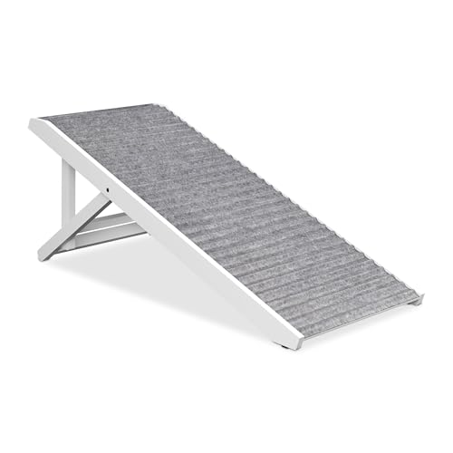 in HundetreppenRelaxdays Hunderampe höhenverstellbar 38–43 cm, klappbar, rutschfest, Holz, 35 kg, Hundetreppe Bett & Sofa, grau/weiß