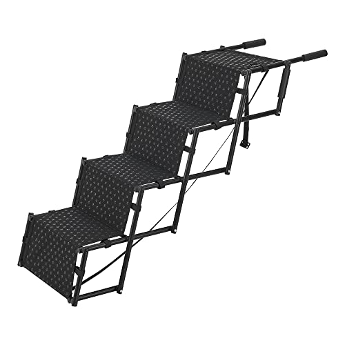 in Hundetreppen[en.casa] Hundetreppe Colchester Haustiertreppe Einstieghilfe 4-stufig faltbar bis 55 kg für kleine und große Hunde Metall Polyester Schwarz