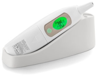 | Beschreibung | Das digitale Infrarot Thermometer misst schnell, praktisch und genau die Ohrtemperatur. Das hintergrundbeleuchtete Display wechselt je nach gemessener Temperatur die Farbe und ein akustisches Signal warnt bei Fieber über 38°C. Das Ablesen der Temperatur wird durch die Farbe des Displays erleichtert. Speichert die letzten zehn Messungen. Produktdetails: Akustisches Signal warnt bei Fieber Grün: 35°C -37,4°C Gelb: 37,5°C - 38°C Rot: 38,1°C - 42,9°C Speichert die letzten 10 Messungen |
