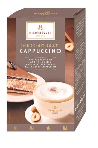 - Der Niederegger Lübeck Nuss-Nougat Cappuccino enthält 9 % löslichen Kaffee, was ihm einen intensiven Kaffeegeschmack verleiht.