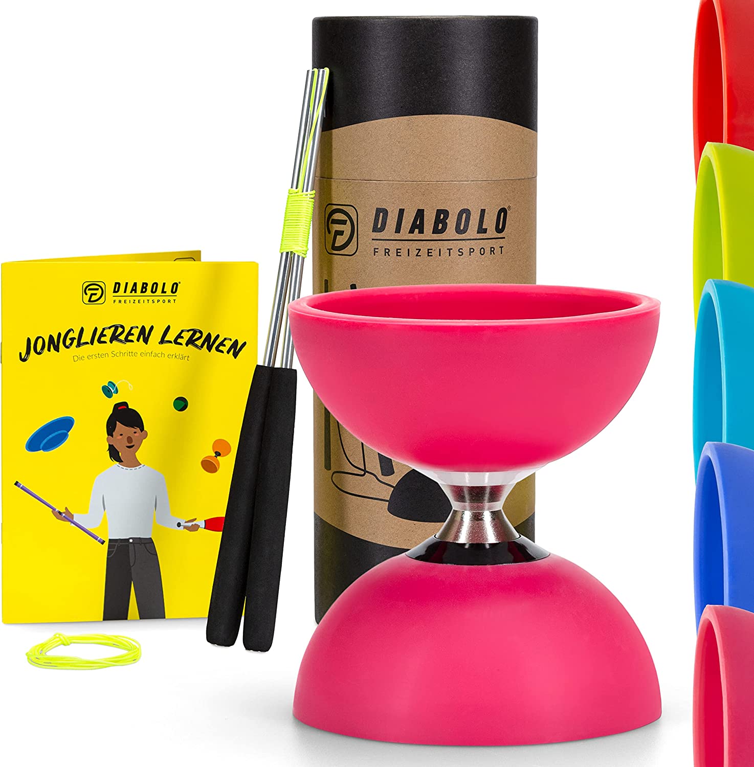 | Name | Diabolo Freizeitsport Jonglier-Set Pro mit kugelgelagertem Diabolo (pink), Handsticks aus Aluminium, Ersatzschnur (160cm) und Gedruckter Anleitung - mit Geschenkverpackung ideal zum Verschenken |