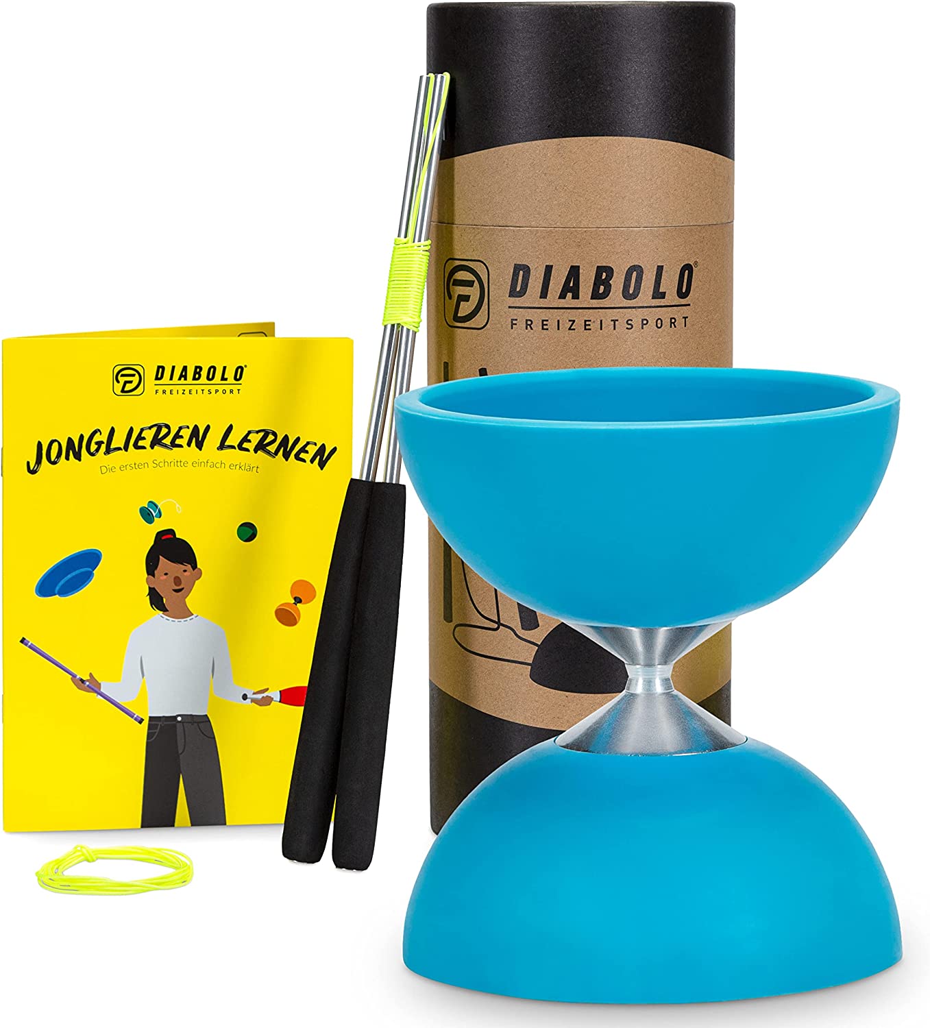 | Name | Diabolo Freizeitsport Jonglier-Set Basic mit Diabolo (türkis), Handsticks aus Aluminium, Ersatzschnur (160cm) und Gedruckter Anleitung - ideal zum Verschenken für Kinder, Einsteiger & Anfänger |