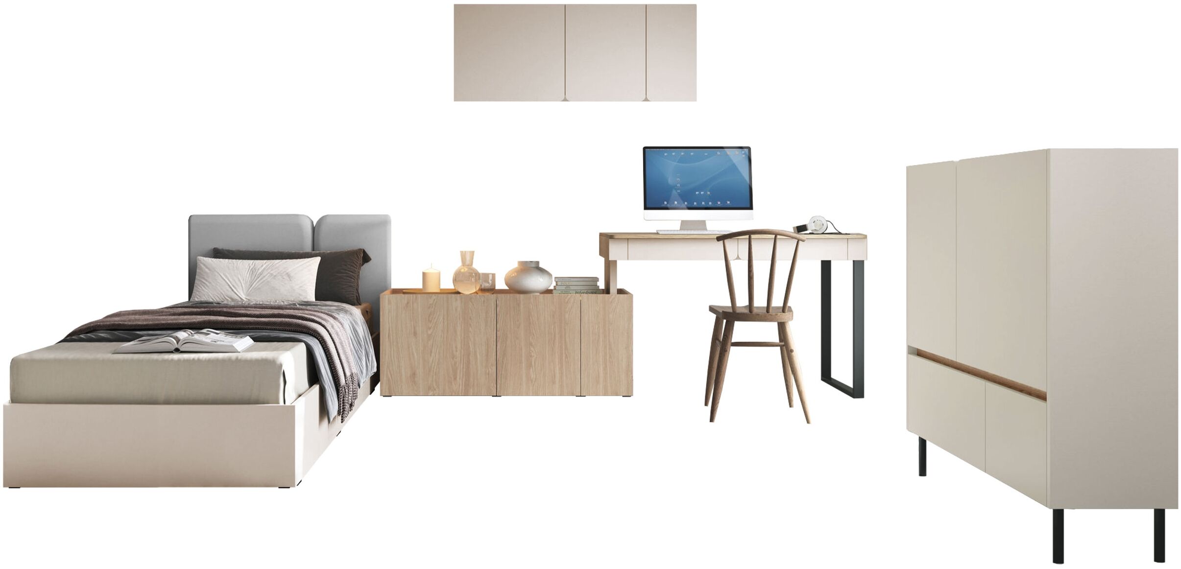 Jugendzimmer-Set Luca II (Farbe: Sandbeige / Geölte Eiche + Portland Ash, Größe: 90 x 200)
