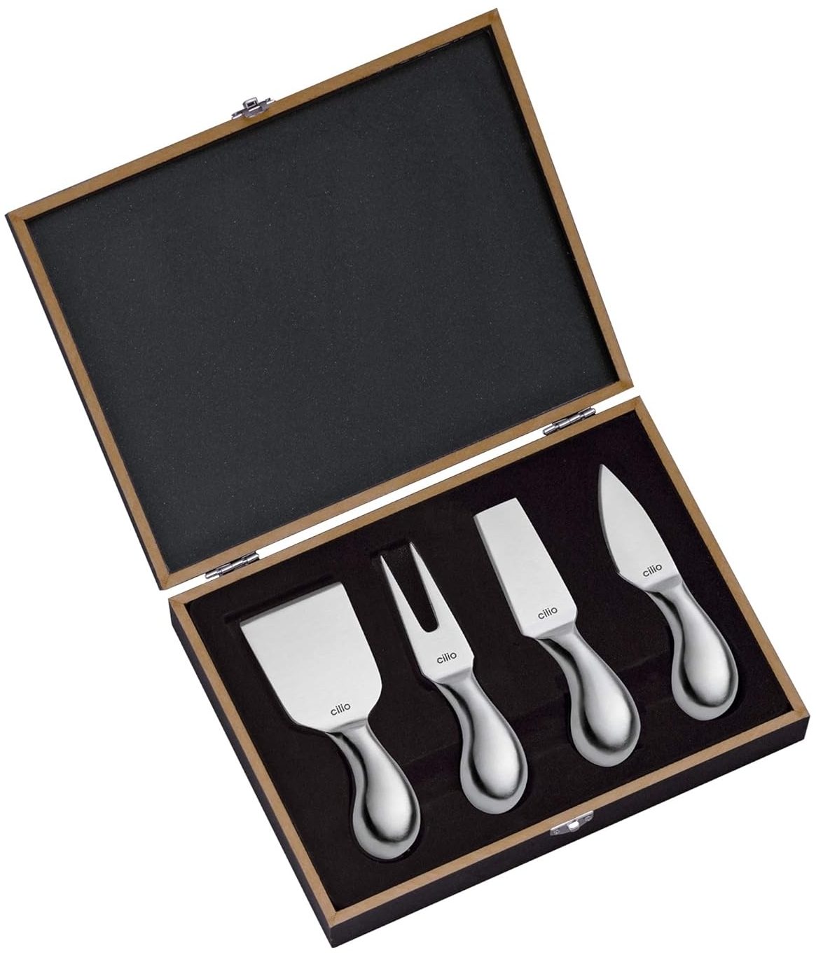 | Lieferumfang | 1x Parmesanbrecher, 1x Hartkäsemesser, 1x Käsegabel, 1x Weichkäsemesser, 1x Holz-Geschenkbox |