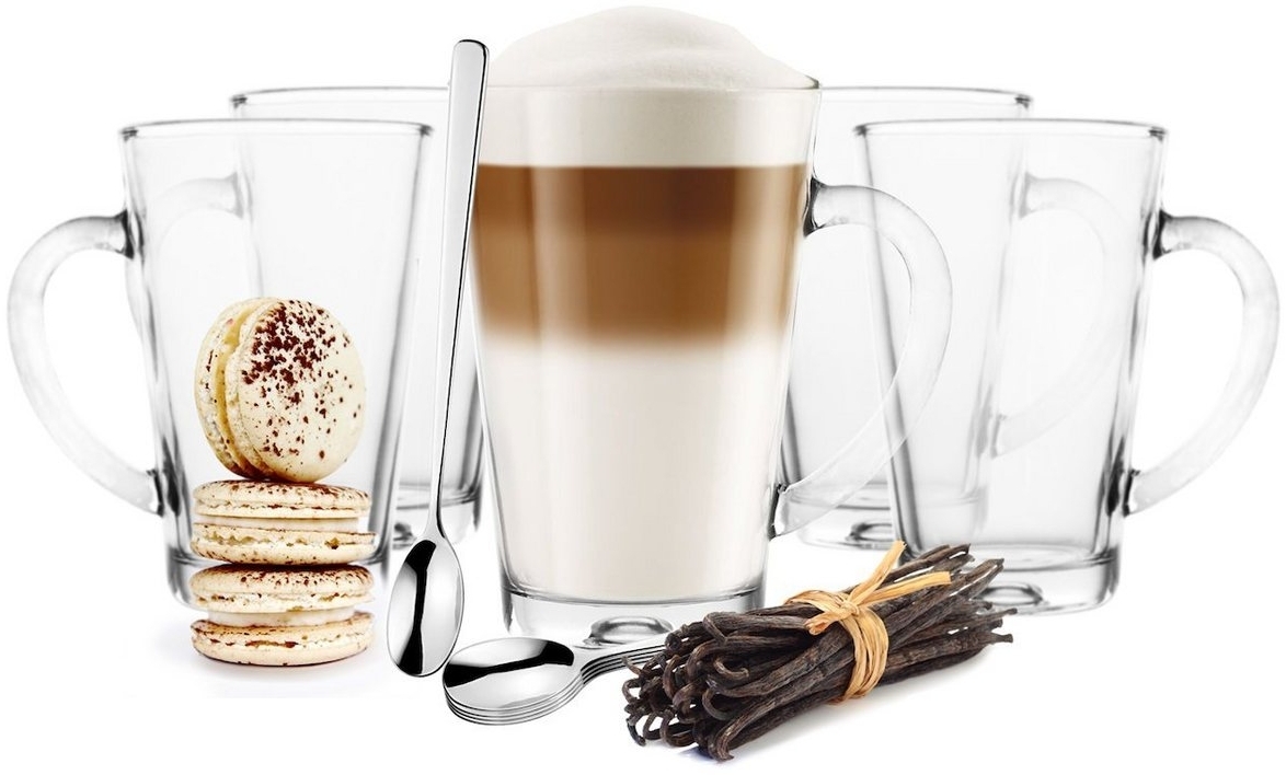 | Name | 6 Latte Macchiato Gläser 300ml mit Henkel und 6 Löffeln, Tee-/ Kaffeegläser |