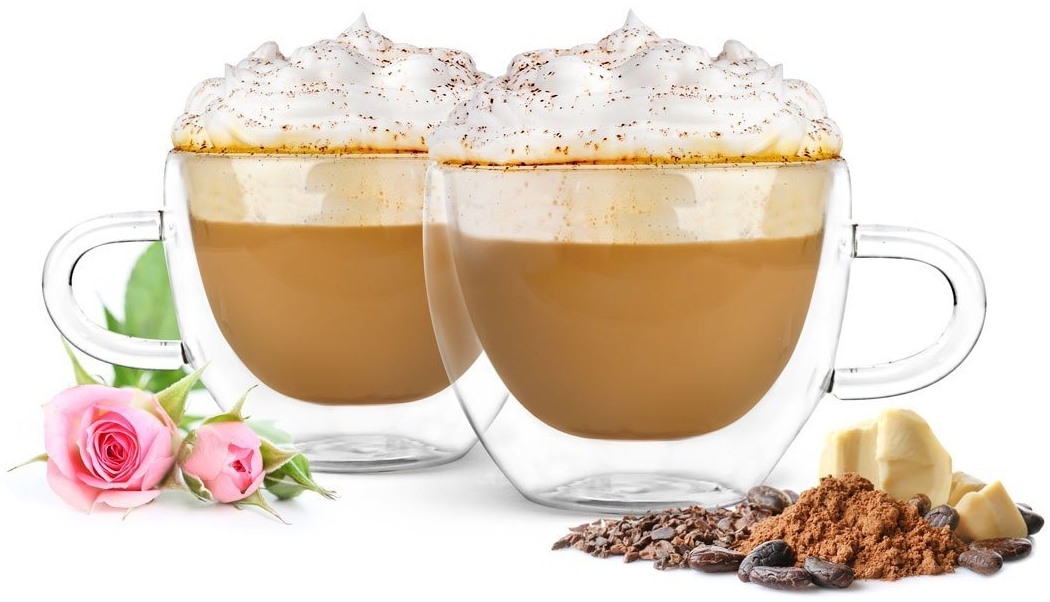 | Name | 4 Doppelwandige Cappuccino Tassen mit Henkel 300ml Kaffeegläser Teegläser |