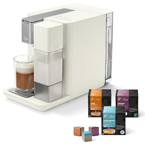 in KaffeekapselmaschinenTchibo Qbo MILK MASTER Premium Kapselmaschine inkl. 24 recyclebare Qbo KapselnCappuccino, Espresso, Milchschaum auf Knopfdruck, abnehmbarer Milchtank 300ml, White Cashmere