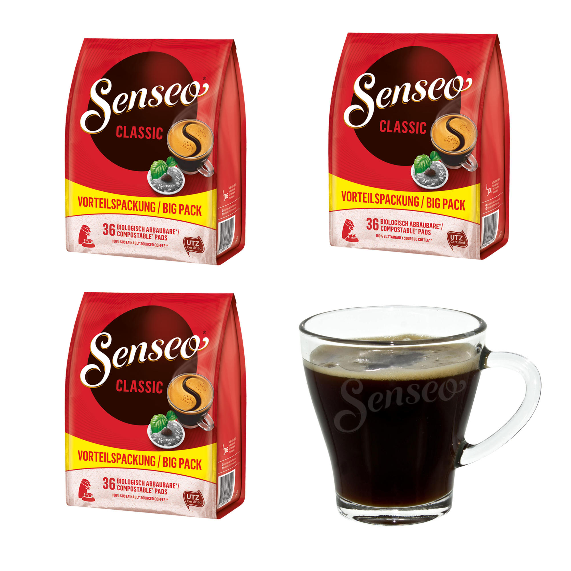 Senseo Kaffeepads Classic / KlassischIntensiver und Vollmundiger Geschmack, Kaffee für Kaffepadmaschinen, 108 Pads, mit Tasse