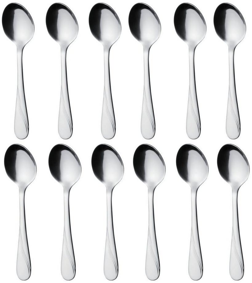 Die Kaffeelöffel der Serie Stralsund sind die perfekte Ergänzung für Ihr Besteck. Mit einem formvollendeten Design und einem dezenten Dekor sind sie ideal für den täglichen Gebrauch. Hergestellt aus hochwertigem 18% Chromstahl, bieten sie Langlebigkeit und Pflegeleichtigkeit. Die Kaffeelöffel sind nickelfrei und somit auch für Allergiker geeignet. **Highlights** - 12er Set Kaffeelöffel mit schönem Dekor - Hochwertiges 18% Chromstahl-Material - Langlebig und pflegeleicht - Allergikergeeignet, da nickelfrei - Spülmaschinengeeignet **Produkteigenschaften** - Länge: ca. 13,5 cm - Griffstärke: ca. 2 mm - Einzelgewicht: ca. 20 g - Material: Edelstahl (18% Chromstahl) - Handpoliert **Lieferumfang** - 12 Kaffeelöffel