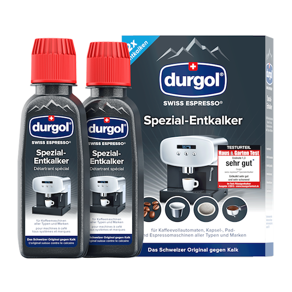 - Durgol swiss espresso ist ein Spezial-Entkalker, der für alle Kaffeemaschinenmarken und -typen geeignet ist.