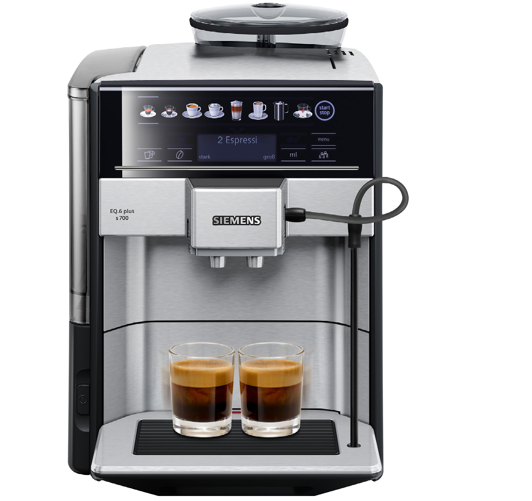 Siemens EQ.6 plus s700 Kaffeevollautomat TE657503DEautomatische Reinigung, Direktwahl, zwei Tassen gleichzeitig, 1.500 Watt, Edelstahl, mit Milchsystem