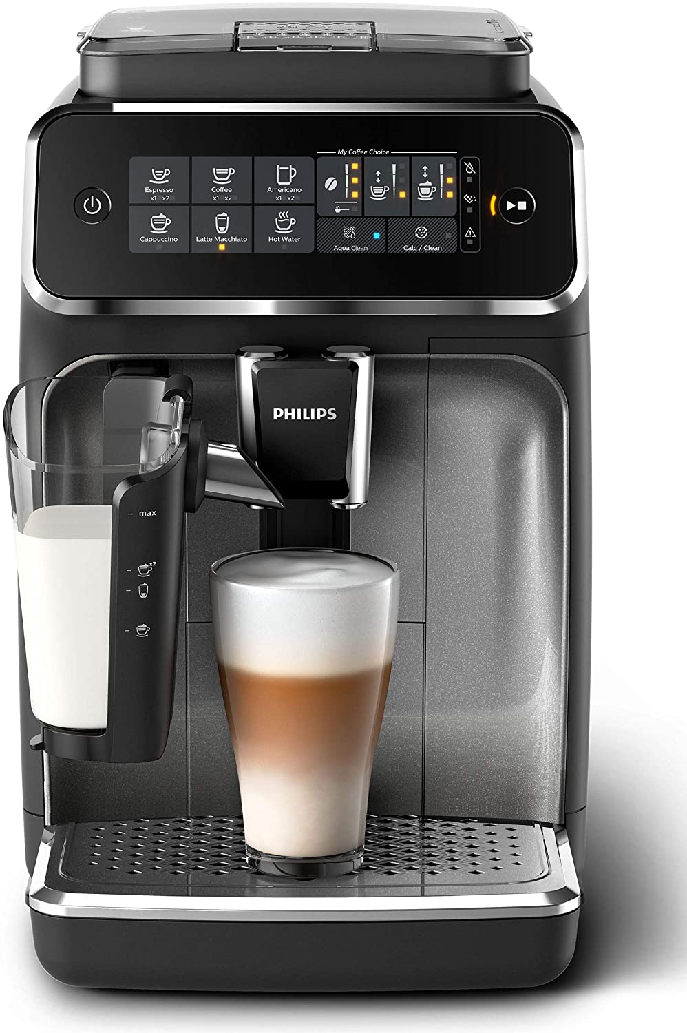 Philips 3200 Serie EP3246-70 Kaffeevollautomat5 Kaffeespezialitäten (LatteGo Milchsystem) Schwarz-Silber-lackiert