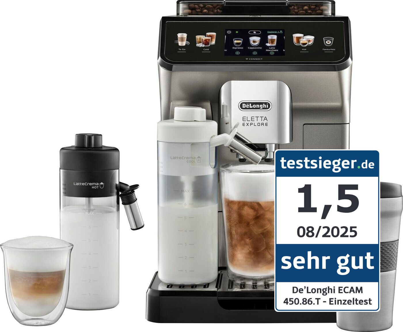 De'Longhi ECAM450.86T ELETTA EXPLORE Cold brew Kaffeevollautomat19 bar, Bohnenüberwachung, herausnehmbarer Milchbehälter, Cold Extraction Technology