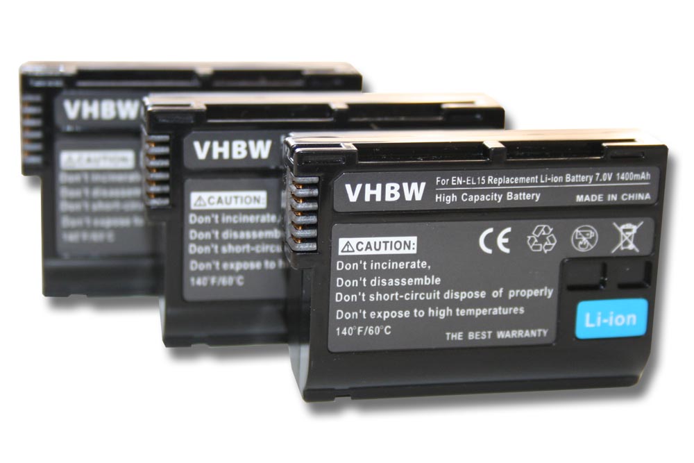 vhbw 3x Akku passend für Nikon 1 V Kamera Digicam DSLR (1400mAh, 7V, Li-Ion) mit Infochip