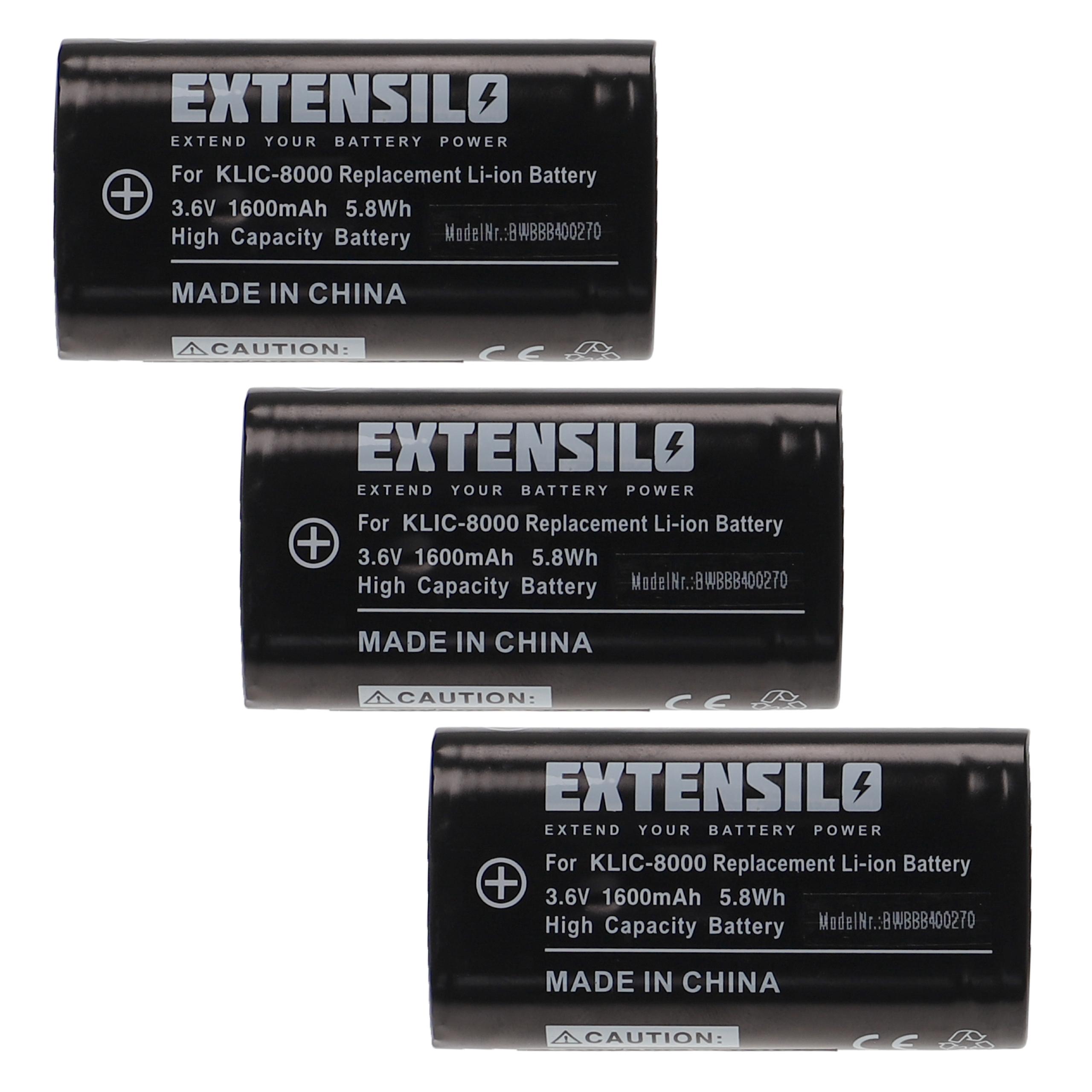 EXTENSILO 3x Akku kompatibel mit Jay-Tech Jay-Cam i4800 Kamera (1600mAh, 3,6V, Li-Ion)