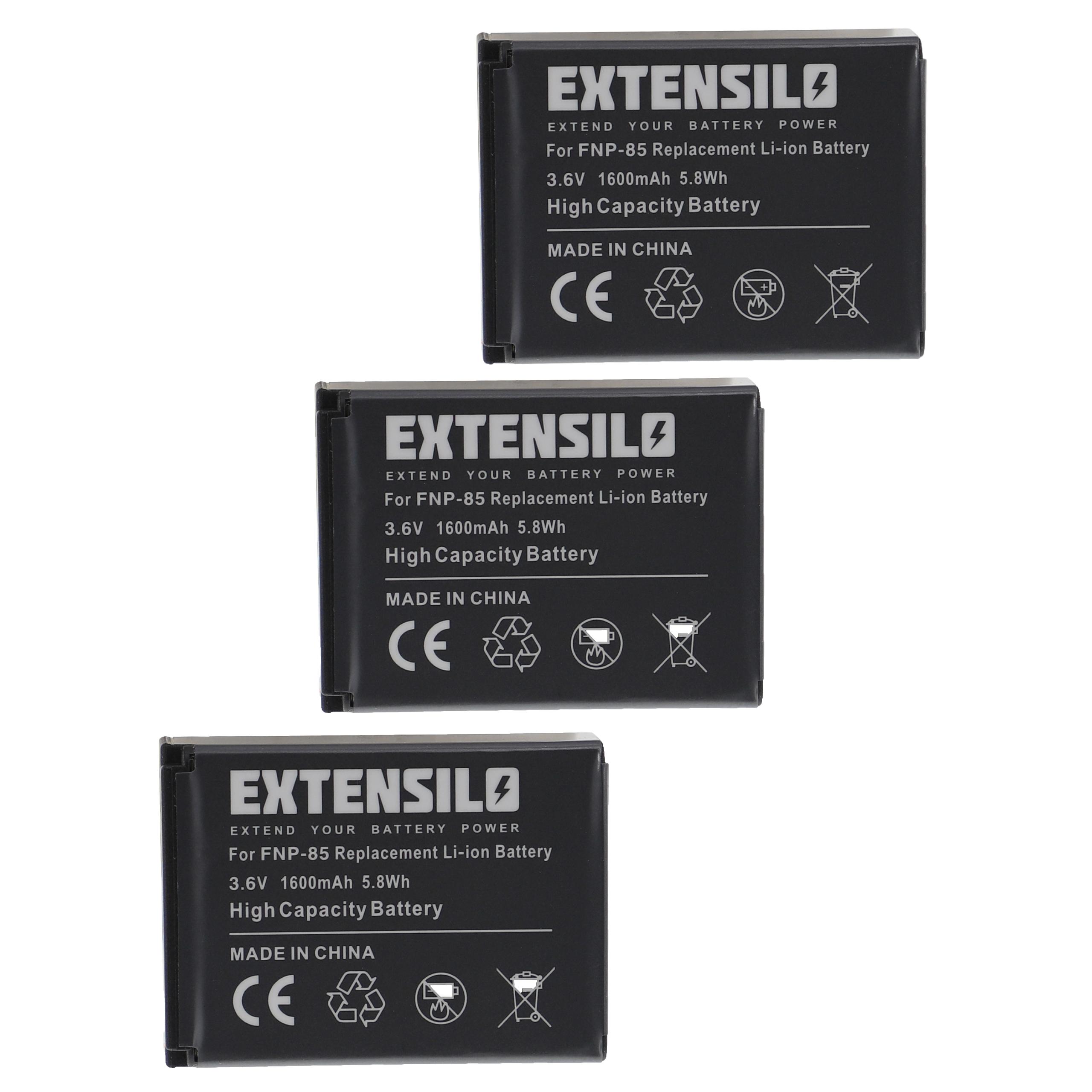 EXTENSILO 3x Akku Ersatz für Aiptek NP-170 für Kamera (1600mAh, 3,6V, Li-Ion)