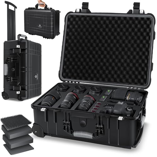 in Kamera-KofferKESSER® Kamerakoffer Transportkoffer Fotokoffer Werkzeugkoffer mit SchaumstoffHartschalen-Universalkoffer Rollen Teleskopgriff, Wasserdicht Outdoor Trolley, Wetterfest, Stoßfest 56x46x27cm (46L)