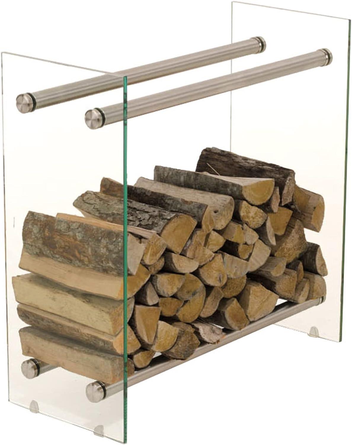 CLP Kaminholzständer Dacio Klarglas edelstahl 35x80x60 cm