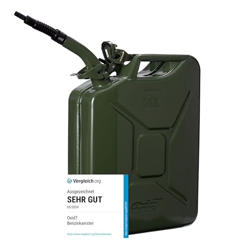 Oxid7® Benzinkanister Kraftstoffkanister Metall - Olivgrün 20 Liter + Ausgießer