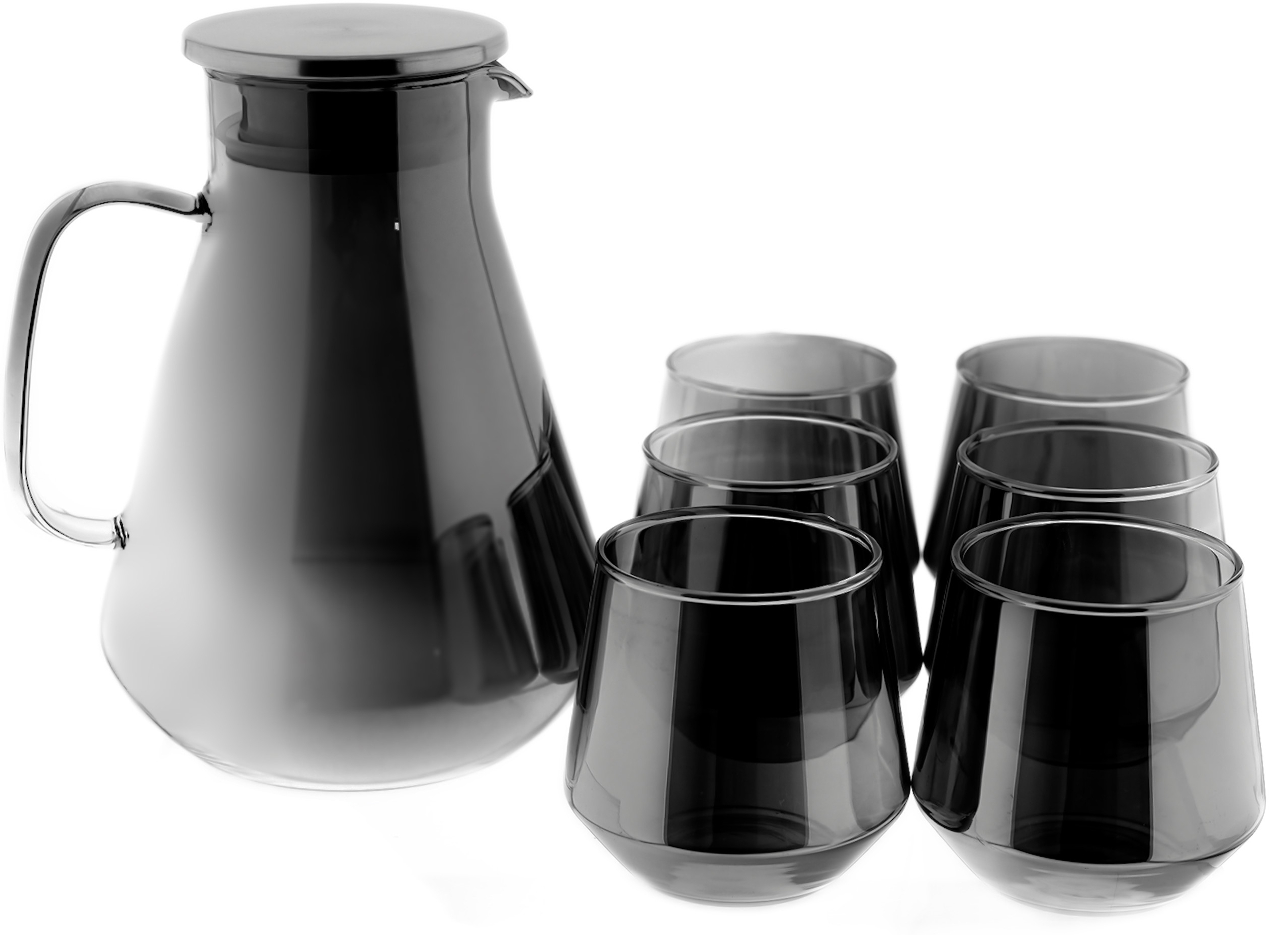 | Name | 7-teiliges Karaffen-Set aus hochwertigem Borosilikatglas mit Deckel & Griff Silber |