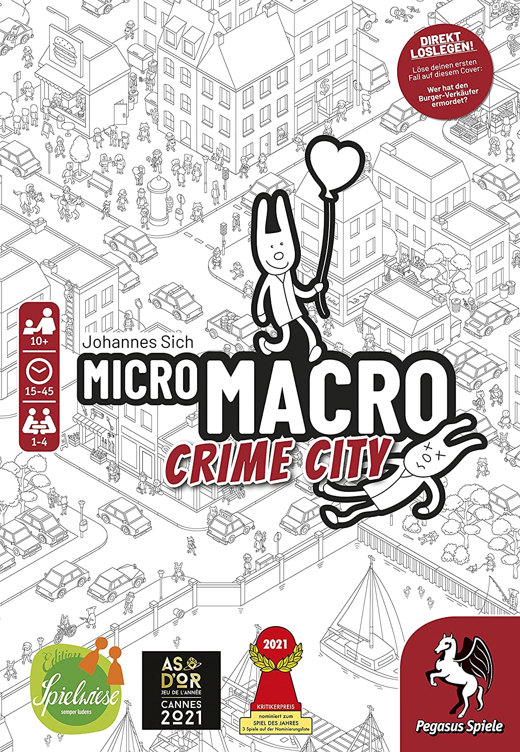 - MicroMacro: Crime City ist ein kooperatives Detektivspiel, in dem die Spieler gemeinsam 16 knifflige Kriminalfälle lösen.