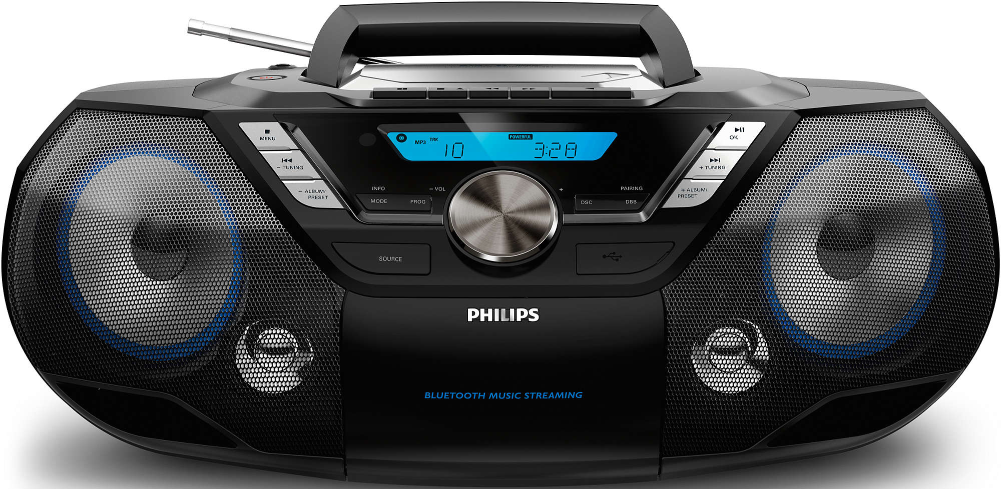 Die Philips AZB798T CD-Soundmaschine mit Bluetooth bietet ein beeindruckendes Klangerlebnis und ist einfach zu bedienen. Mit der Fernbedienung können Sie Ihre Lieblings-CDs oder Musik von Ihrem Smartphone streamen, ohne aufstehen zu müssen. Ein weiterer Vorteil besteht darin, dass Sie die Soundmaschine sowohl im Netz- als auch im Batteriebetrieb nutzen können - dies gibt Ihnen mehr Unabhängigkeit.