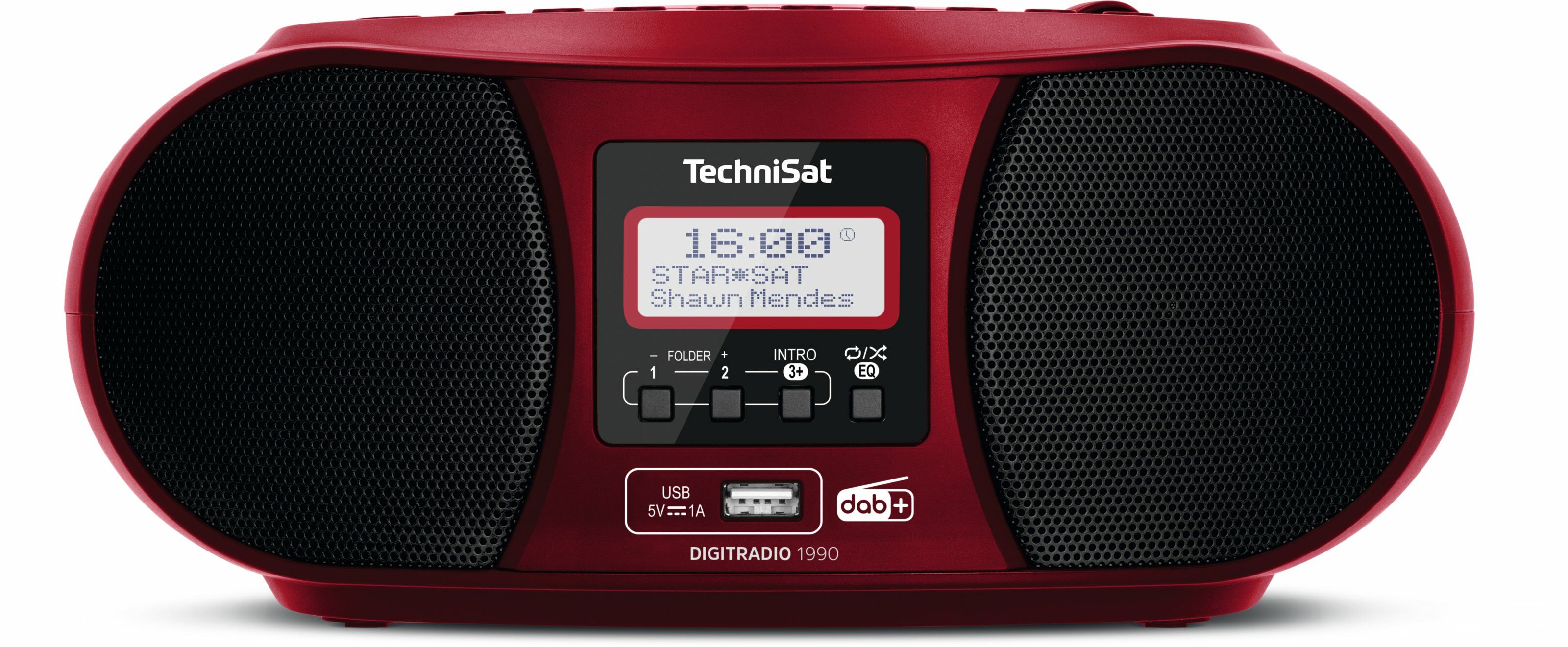 in Kassetten-/CD-RadiosTechniSat DIGITRADIO 1990 - Stereo-Boombox mit DAB+/UKW-Radio und CD-Player (Bluetooth-Audiostreaming, Kopfhöreranschluss, USB, AUX in, Ladefunktion, Uhr, 2 x 1,5 Watt Ausgangsleistung) rot