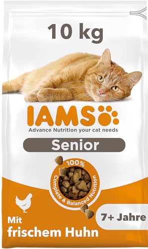 in Katzen-TrockenfutterIAMS Senior Katzenfutter trocken mit Huhn10 kg - Ausgewogenes Trockenfutter für Katzen ab 7 Jahren, reich an tierischen Proteinen, weizenfrei, mit Omega-3- & Omega-6-Fettsäuren für gesunde Haut und glänzendes Fell