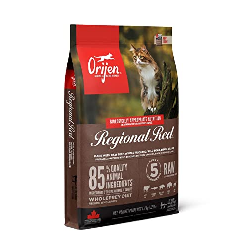 - ORIJEN Regional Red Cat bietet einen hohen Anteil von 85% tierischen Zutaten, wobei etwa zwei Drittel frisch verarbeitet werden und ein Drittel schonend getrocknet ist
