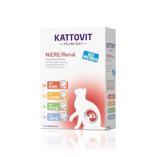 in KatzenfutterKattovit Feline Diet Nassfutter Katze Niere/Renal Multipack in Sauce12 x 85 g, zur Unterstützung der Nierenfunktion, reduzierter Eiweißgehalt, harnalkalisierend
