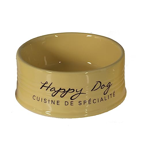 in KatzenfutternäpfeDuvoplus Futterstation Stone Happy DogKeramiknapf 300 ml, Ø 10,5 mm, Gelb, wasserdicht und leicht zu reinigen