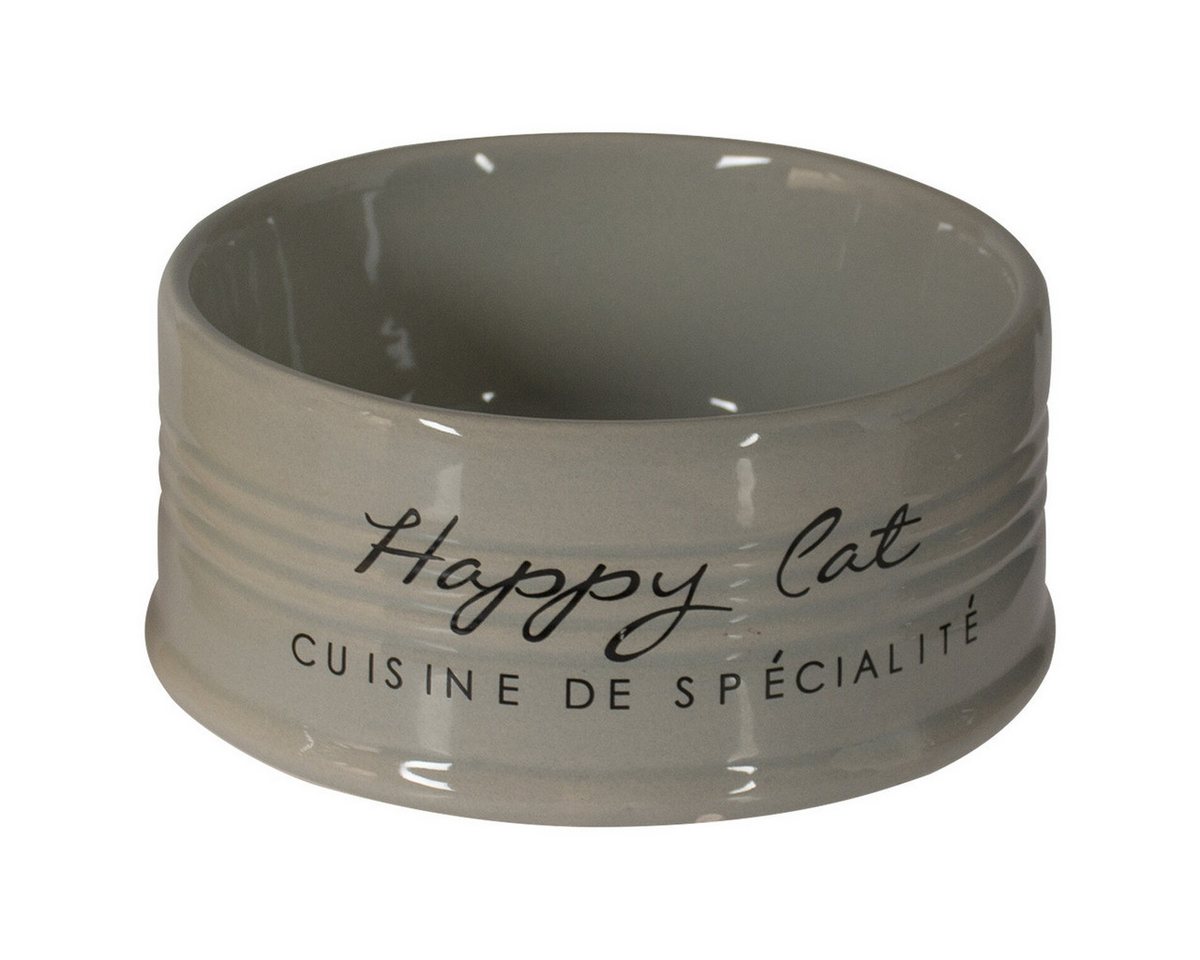 in KatzenfutternäpfeDUVO+ Futternapf Stone Happy CatKeramik-Napfteller grau, Durchmesser 10,5 cm, Fassungsvermögen 300 ml