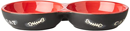 Nobby Katzen Keramik Doppelnapf "CAT" schwarz / rot 22 x 11,5 x 3,5 cm