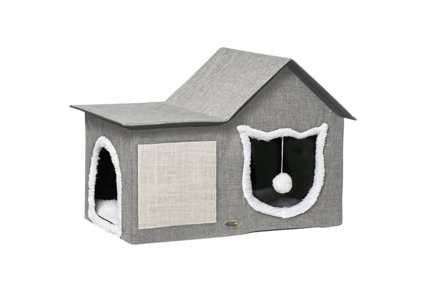 - Mit zwei Türen, einem Spielball und einer Kratzmatte ist dieses Katzenhaus sowohl funktional als auch ansprechend gestaltet