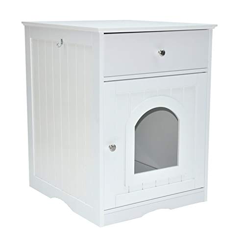 - Hergestellt aus weiß lackierten MDF-Platten, ist dieser multifunktionale Schrank stabil und eignet sich hervorragend als Möbelstück für Katzen und Hunde