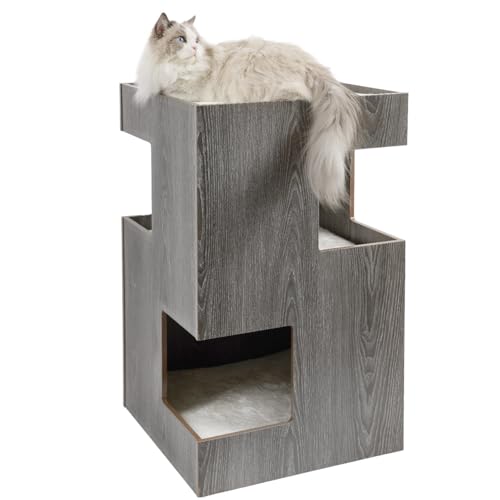 in Katzenhöhlen & -häuserCanadianCat Company Cat CastlePremium Katzenbett aus Holz mit 2 Höhlen, inkl. 3 waschbaren Kissen, dunkelgrau, 50 x 50 x 80 cm