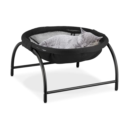 🔥 Deal in KatzenmöbelRelaxdays Katzenhängematte mit Ständererhöhter Katzenhängesessel aus Polyester, HBT: 25 x 44 x 42 cm, schwarz, bis 10 kg tragbar