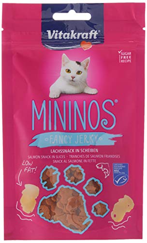 - Der Vitakraft Katzensnack Mininos in der Geschmacksrichtung Lachs kommt in einem praktischen 40 g Beutel, der sich leicht wiederverschließen lässt
