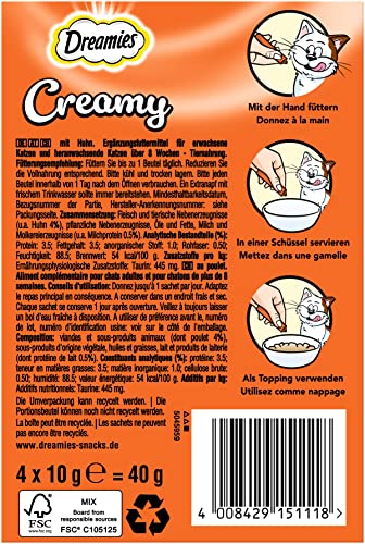 Dreamies DREAMIES™ Creamy Snack mit Huhn4 Packungen à 10g, ohne Zuckerzusatz, mit Taurin, für Katzen