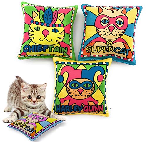 - Das ELANOX Katzenspielzeug besteht aus einem praktischen Set von drei bunten Schmusekissen, die mit Katzenminze gefüllt sind