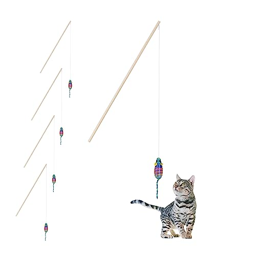 - Das Set enthält 5 Katzenspielangeln, jeder Holzstab ist ca. 46 cm lang und die Maus hat die Maße HxBxT: ca. 3 x 15,5 x 3 cm.