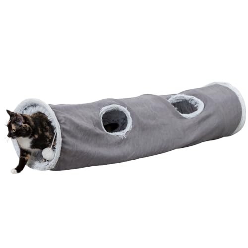 in KatzenspielzeugeTrixie Katzen-Spieltunnel Harveyweicher Katzentunnel mit vier Eingängen, 27 × 116 cm, Grau, mit Spielzeug an Schnur