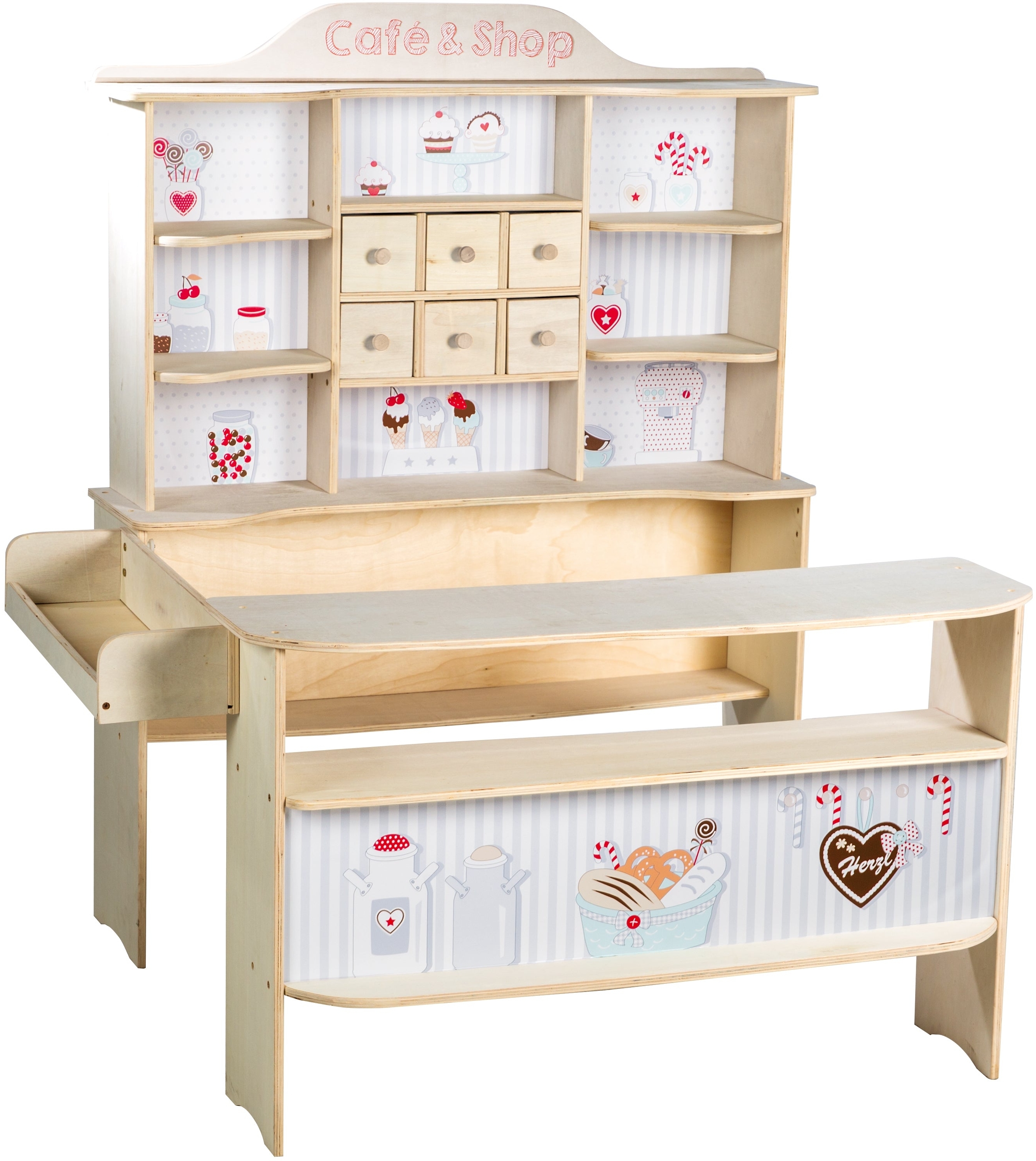 | Name | roba Kaufladen 'Café & Shop' mit Zubehör - Seitentheke & Theke mit Bedruckung - Holz - Natur |